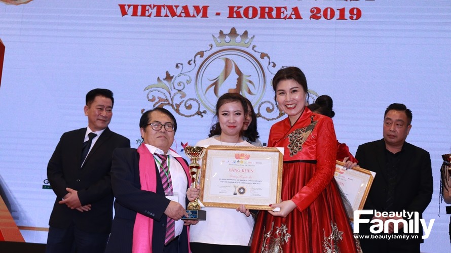 Đại diện Beauty Family nhận bằng khen của Hội Phát triển ngành Chăm sóc sắc đẹp Việt Nam vì hoàn thành xuất sắc vai trò truyền thông cho Master Beauty Contest Việt – Hàn 2019