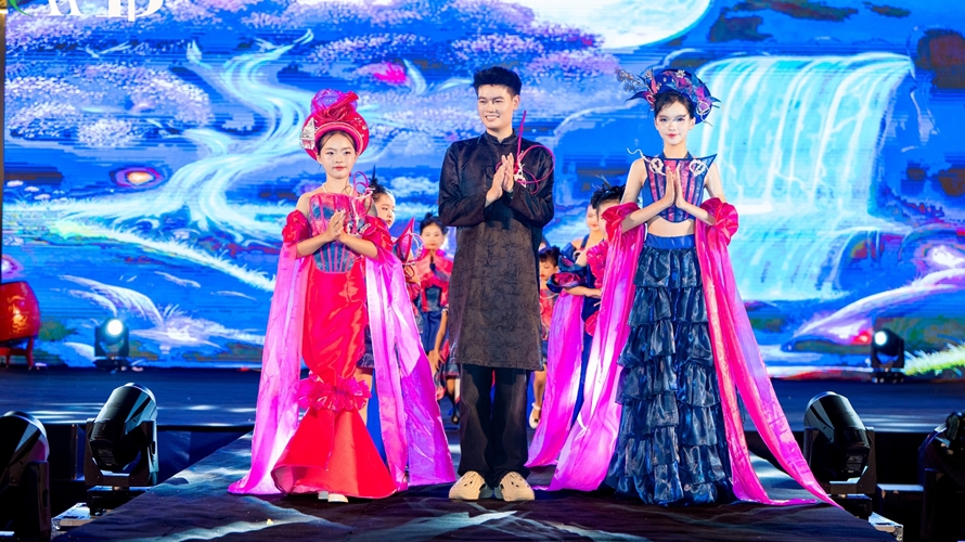 Giữa không gian rực rỡ sắc màu của đêm hội trăng rằm, BST “Nguyệt Thủy Vân Ca” của NTK Đức Lương đã trở thành một trong những điểm nhấn ấn tượng nhất của chương trình.
