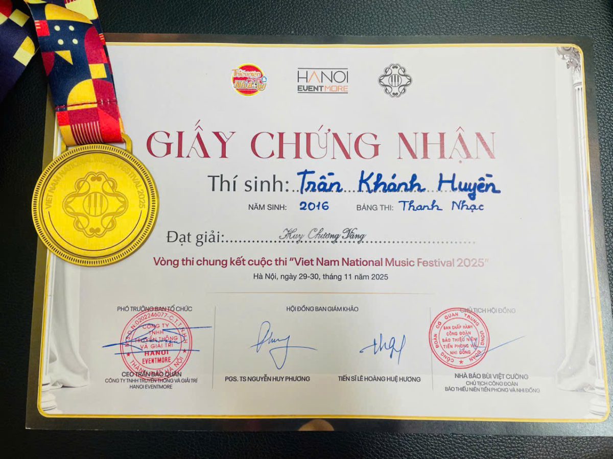Năm 2025 khép lại, để lại phía sau không chỉ là những giải thưởng, thành tích, mà quan trọng hơn cả là một hành trình tuổi thơ đẹp đẽ, nhiều trải nghiệm và ngập tràn yêu thương. Và tin rằng, với nền tảng vững vàng ấy, cô bạn nhỏ Trần Khánh Huyền sẽ còn tiếp tục viết nên những chương mới rực rỡ hơn nữa trên hành trình phía trước.